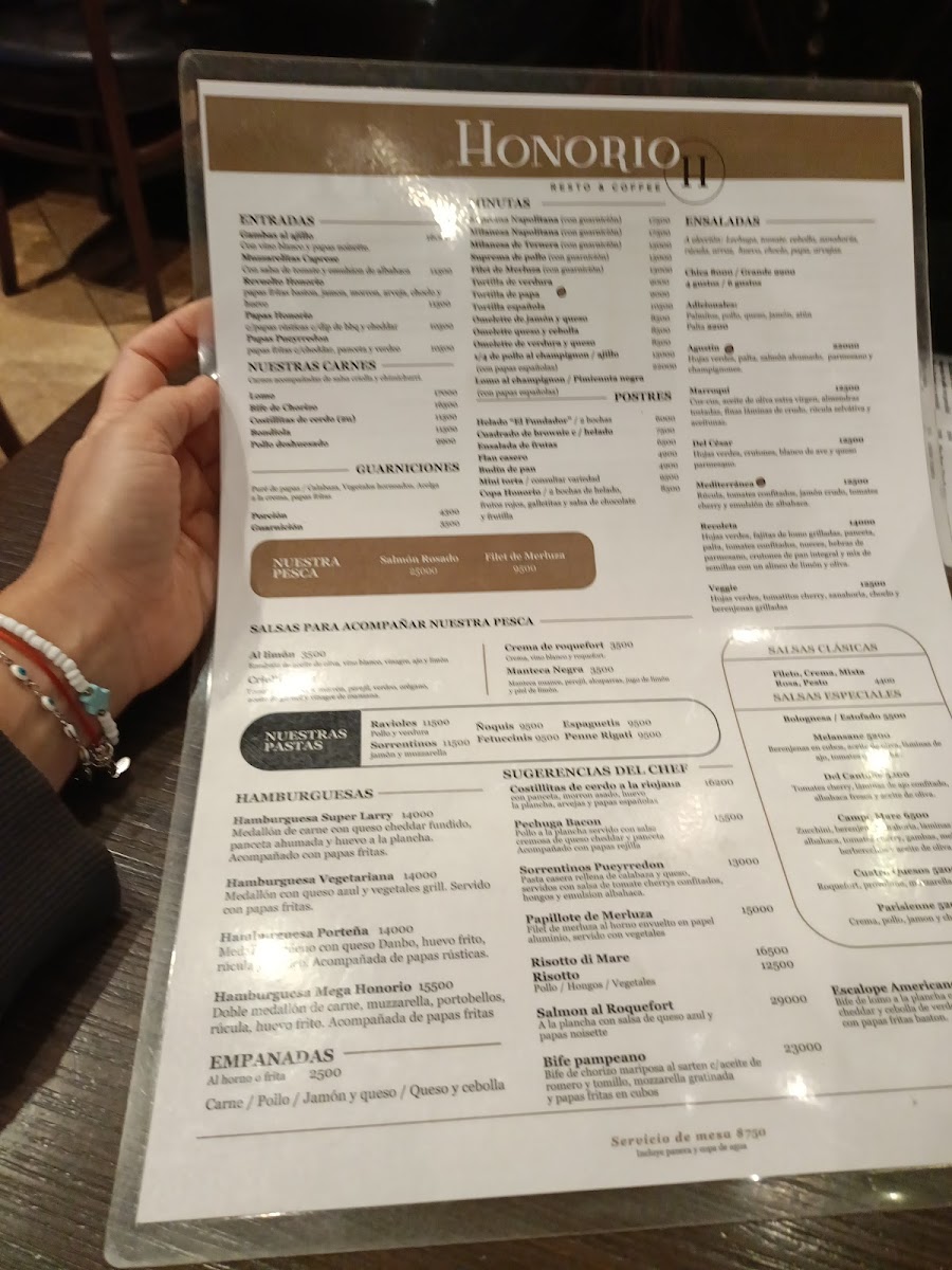 Welcome to HONORIO Resto & Coffee, located in the heart of Buenos Aires at Av. Pueyrredon 1501. This charming establishment offers a delightful menu that celebrates Argentine flavors. The star of the show is undoubtedly their selection of empanadas, featuring classics like the Empanada De Cebolla Y Queso and Empanada De Carne, each priced at ARS 2,300. If you're craving something more substantial, indulge in Merluza Con Papas Fritas, where perfectly grilled hake meets golden fries for ARS 11,000.